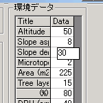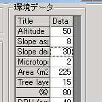 (4)素表ウィンドウの更新3.データの訂正 (1)被度・群度及び環境データの訂正 ・ 素表ウィンドウ上で、直接被度・群度と環境データの訂正が行えます。 ・ 訂正したい箇所を、ワンクリックで選択し、ダブルクリックでオープンして訂正を行い、Enterキーで決定します。 ![]()
