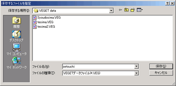 | ・ | 融合して新しく作成されるファイルの名前を指定してください(setouchi.VEG と指定)。 |