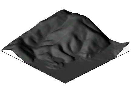 | 図1はDEMを基にして作成した生態システム園の陰影図です。地形の凹凸がはっきりわかります。 |