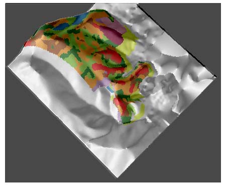 | 今後の課題はDEMにより、地質の特性・土壌の厚さや保水力などと、地形・植生との関係解析を行うことです。 |