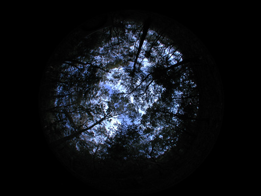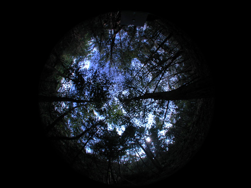 上の写真は、理科大学の自然植物園の林内を魚眼レンズで撮影した写真です。