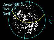 さらに太陽の軌道(写真の黄色の曲線)を描き、その曲線が写真の白い部分を通過しているかを調べ、