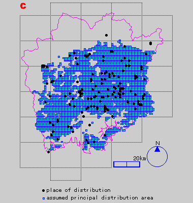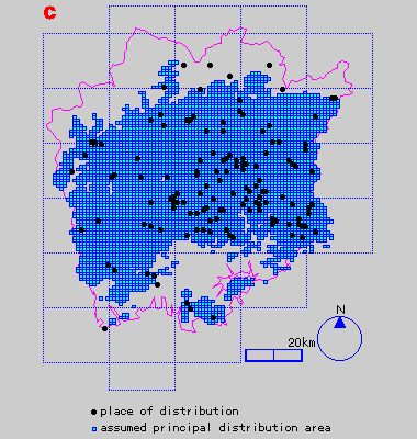 c:●は分布地,□は推定主要分布地を示す(図6〜22についても同様)