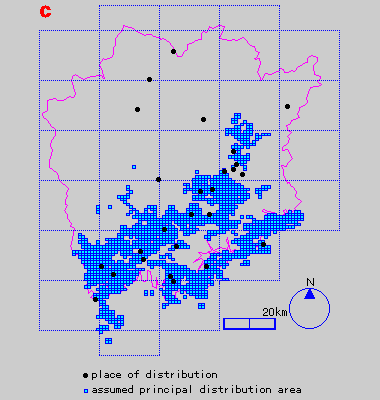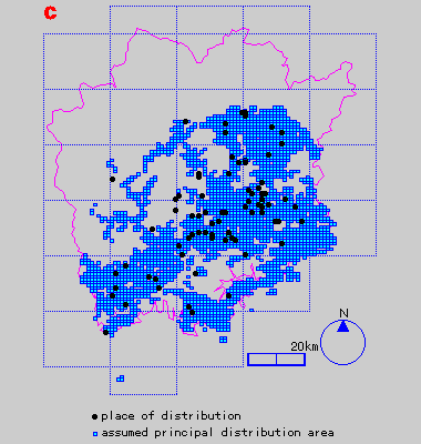分布範囲に関しては本分布型に該当するが,分布傾向は他種と大きく異なっている。本種は堆積岩地域に生育することが多く,地質分布の不均質さが大きく影響しているものと思われる。
