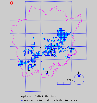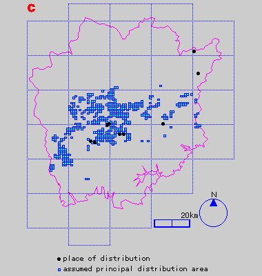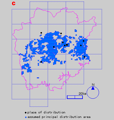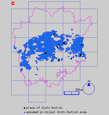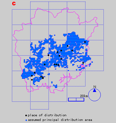 主に県中部吉備高原に分布している。両種の生育立地そのものは異なっているが,気温・降水量の面から見ると,分布地域の大部分は重複している。