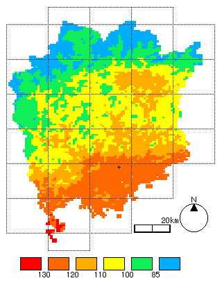 | 図3.暖かさの指数の分布(単位:℃・月) |