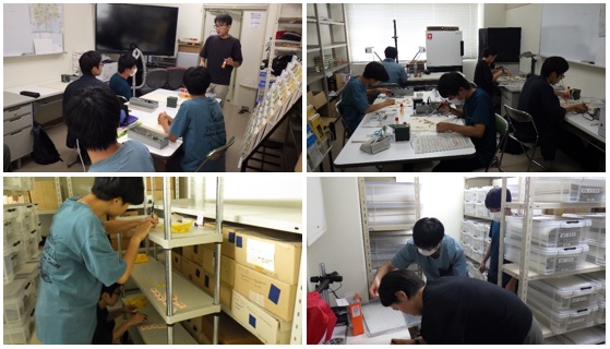![]() | 2日目は、植物標本の標本の貼り付けと標本室の防虫処理と整理をおこないました。実習生の皆さんは、標本の貼り付けに大変興味を持ってくださり、予定時間をオーバーするほど熱中されていました。 |