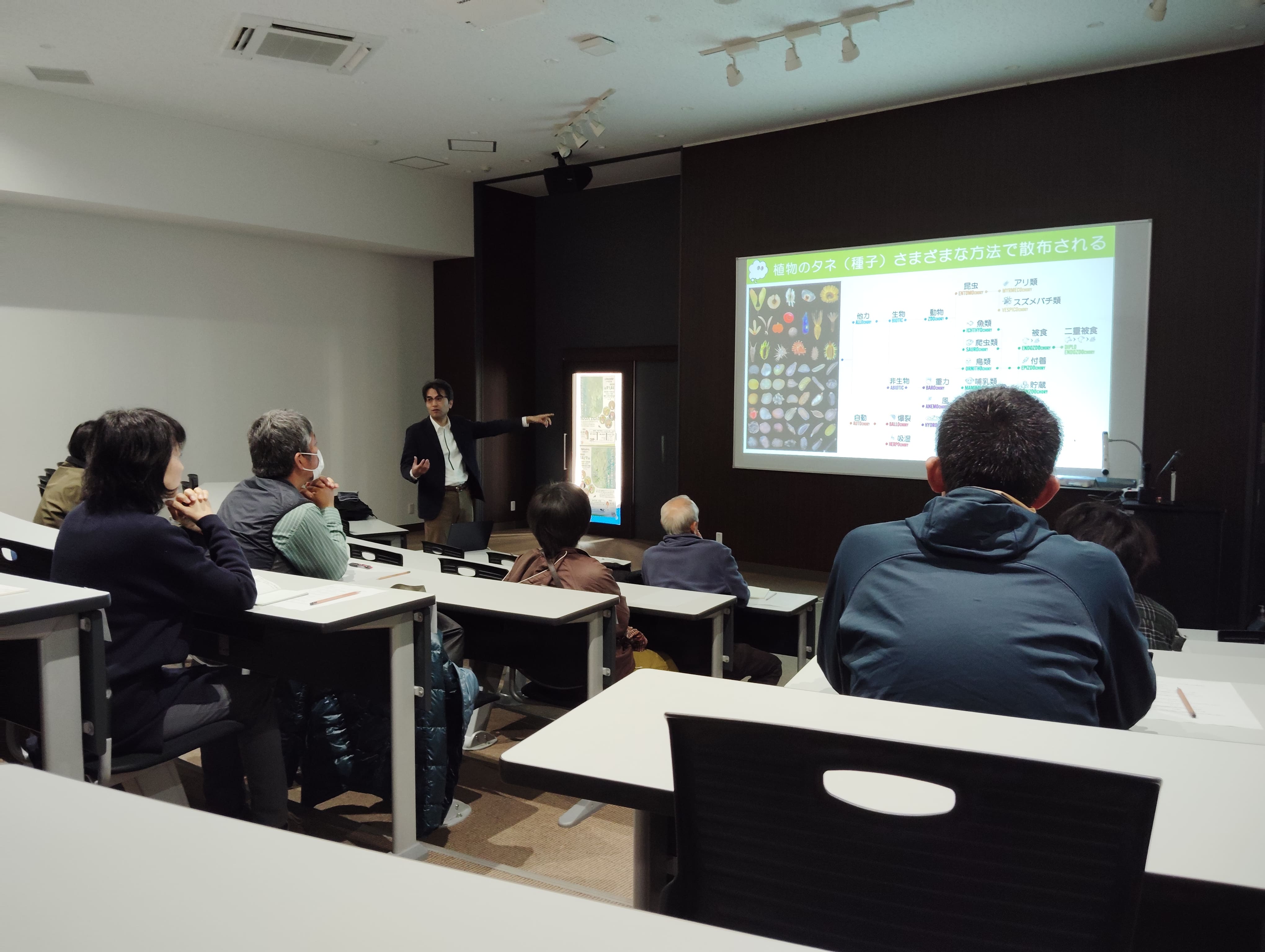 *ミニシンポ報告* 2024年6月22日(土)開学60周年記念 ”SDGsミニシンポジウム 自然との共生” において、池谷センター長が司会を務め、東馬先生が「岡山県内の道沿いでも見られる珍しい植物」と題し、全国的に珍しいチトセカズラ、岡山県では珍しいオオバウマノスズクサを例に、「陸の豊かさも守ろう」について講演しました。 |